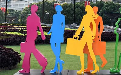 剪影雕塑,看的就是個輪廓!把你想做的東西(人、動物、樹啊啥的),簡化成影子形狀。材料選擇多:不銹鋼、耐候鋼(喜歡生銹那種質感)、玻璃鋼、鍍鋅板、鐵板都成。最后還得靠噴漆,給它們打扮上顏色。